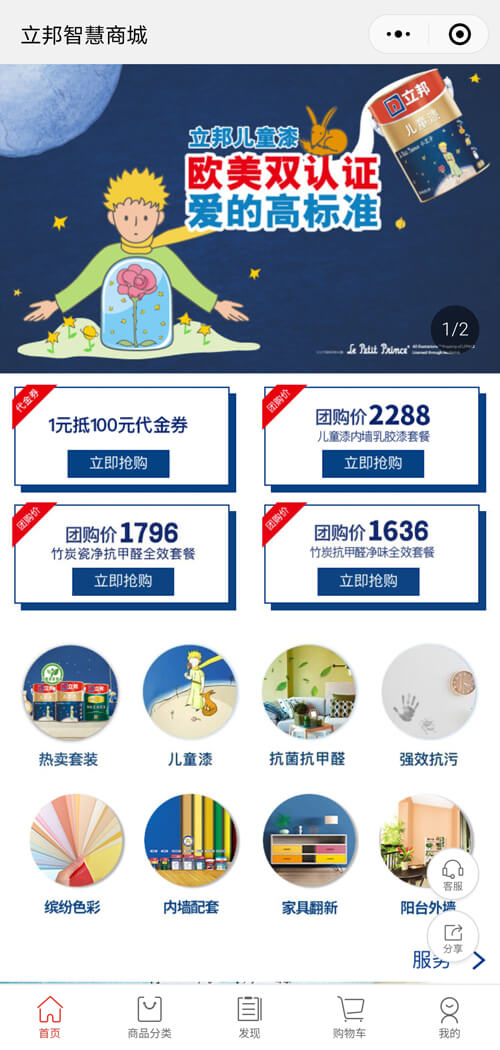 知名涂料制造品牌之一,其业务范围广泛,涉及到领域建筑涂料、汽车涂料、一般工业涂料、卷钢涂料、粉末涂料等领域。。立邦微商城案例
