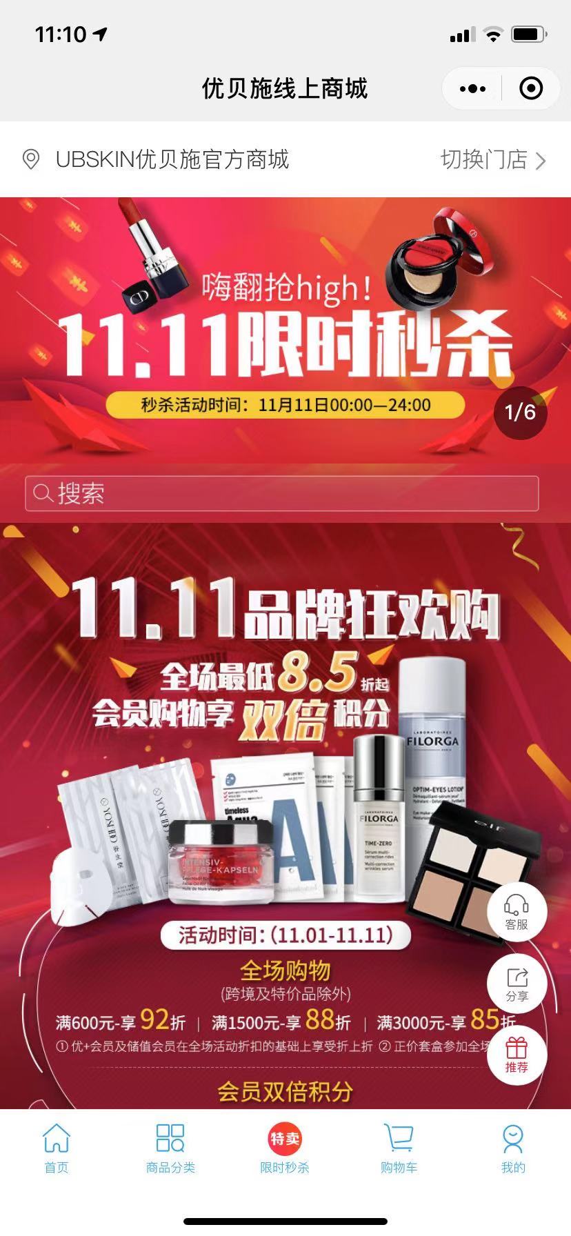 优贝施,汇集全球药妆资源,打造崭新的个人护理概念,带来进口、安全、效用三位一体的护肤产品集合店。-优贝施商城小程序案例
