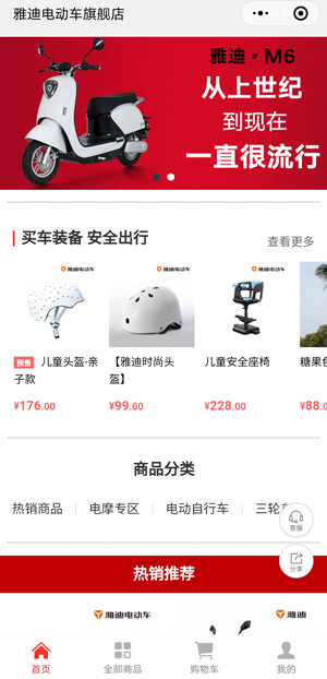 连续十二年销量领先 ,行业一家产品覆盖5大洲,畅销77 个的品牌。雅迪电动车新零售商城小程序