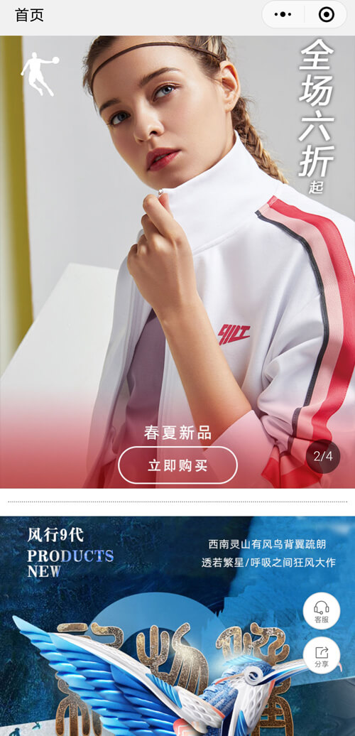 中国领先的体育用品品牌,福建省百强企业。乔丹新零售微商城商城小程序