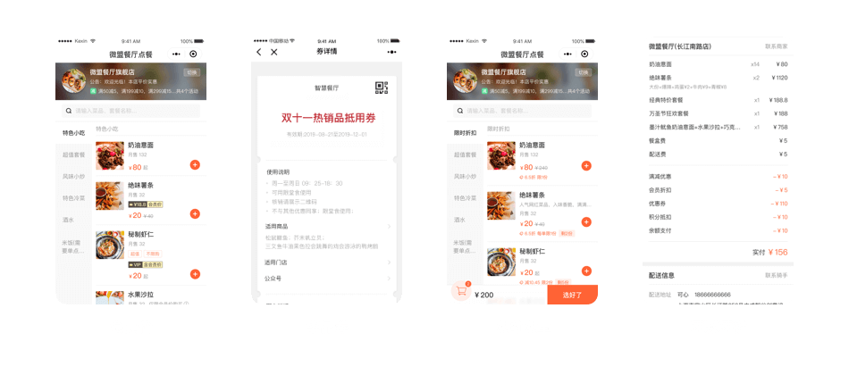 预点餐、柜台免排队点餐、桌台扫码点餐、多人同时点、自助加菜